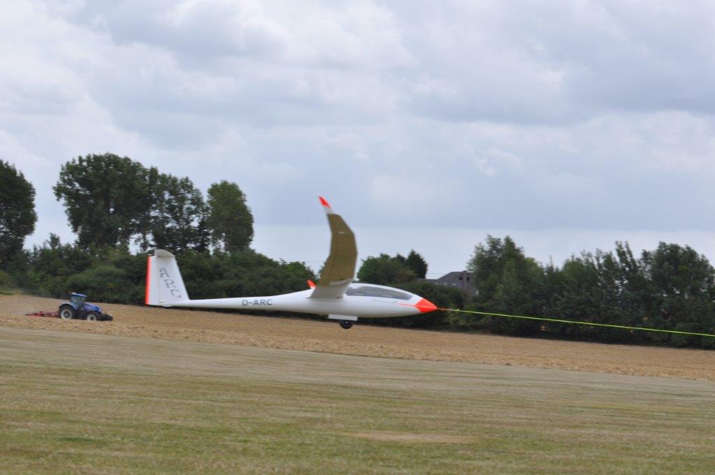 Dit jaar kregen we nog een tweede Rans om te slepen, gevlogen door onze Duitse vriend Stefan. Gezien hij nog maar weinig sleepervaring had kreeg hij in het begin veel bijstand van expert Richard, en had hij tegen half de week de kneepjes van het vak geleerd om 23kg kisten op te slepen. Wij zagen hem van ’s morgens tot ‘s avonds elke dag slepen alsof hij er van bezeten was. Ook nieuw dit jaar was de komst van de Franse Michel, in feite de ontwerper van het oermodel van de Bidule. Met zijn maat die een 8,5m span ASH25E bij had kwamen ze speciaal over vanuit het gebied naast de Pyreneeën, een lange tocht. Zijn Bidule sleepte ook dagelijks talrijke zwevers omhoog in een soms wat eigenzinnige stijl, maar was een welkome aanvulling op de overige meer traditionele BiGGS slepers. Het is fijn om zien dat piloten zo maar niet zelf zitten aanmodderen tot ze het goed doen, maar geen schroom meer hebben om advies en coaching te vragen bij oudgedienden, misschien kunnen we best eens een sleepcursus overwegen voor BiGGS leden.