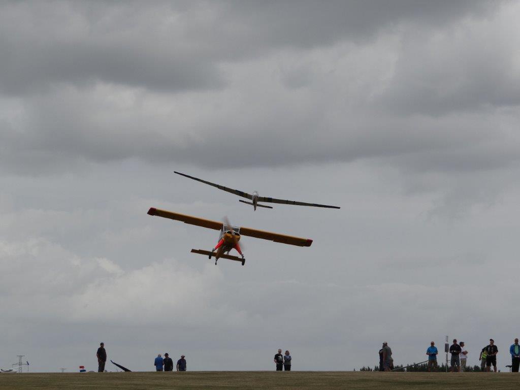 Maandag mochten we kennis maken met de sterke wind die voor gans de week de stempel zou drukken op dit treffen. Die dag stond hij echter volledig cross en alleen de echte ‘bravehearts’ hebben zich aan een paar vluchtjes gewaagd waarbij de toeschouwers hun hart vasthielden telkens er geland moest worden vanuit aangepaste niet gepubliceerde richtingen. Ondanks onheilspellende weerberichten werd er de rest van de week toch elke dag gevlogen door het merendeel van de deelnemers. De wind bleef fors maar blies meestal in de as van het veld waardoor het bergaf landen minder dan vroeger problemen veroorzaakte. Het was trouwens opmerkelijk dat er niettegenstaande de mindere weersomstandigheden en het dikwijls opereren met 2 slepers en vele toestellen in de lucht, er zo weinig bijna aanvaringen in de lucht gebeurden en geen enkele op de grond. Waarschijnlijk is dit resultaat ook te danken aan het steeds beter toepassen van de aangeraden procedures van het vlieghandboek. De sterke wind hield ook iedereen alert bij het vliegen van een correcte sleep en circuit, wat uiteindelijk een meer relaxe vliegomgeving tot gevolg had.