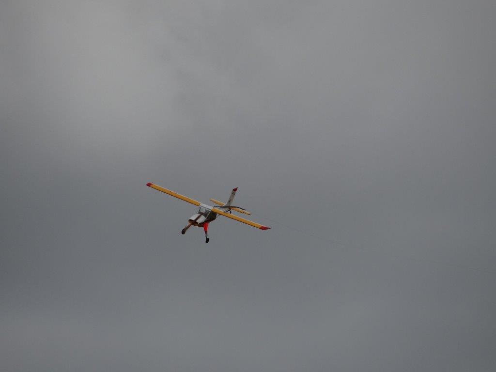 Wat de slepers betreft zijn er wel een paar feiten te vermelden die de moeite waard zijn. We waren allemaal blij om Eric terug bezig te zien met een brede glimlach ipv de grimassen veroorzaakt door zijn vroegere pijnen. Ondertussen laat zijne excellentie zich ook omringen door een waar team die zijn koord uitrolt en Rans toestel voorziet van brandstof. Niet alleen dat, maar hij heeft nu ook een jonge co-piloot die het routine werk van hem overneemt. Terwijl Eric verleden jaar Mira met de groen-witte Wilga circuits liet vliegen bij kalm weer, kreeg zij dit jaar opleiding in het slepen met de Rans. Tegen het einde van de week sleepte zij zwevers van +20kg omhoog en had ze alleen nog hulp van Eric nodig om bij de felle windstoten die mooie Rans netjes terug aan de grond te krijgen. En Eric, na de pitts-crew en co-piloot van dit jaar, volgend jaar pitts-poezen en een ober met koffie of frisdranken?