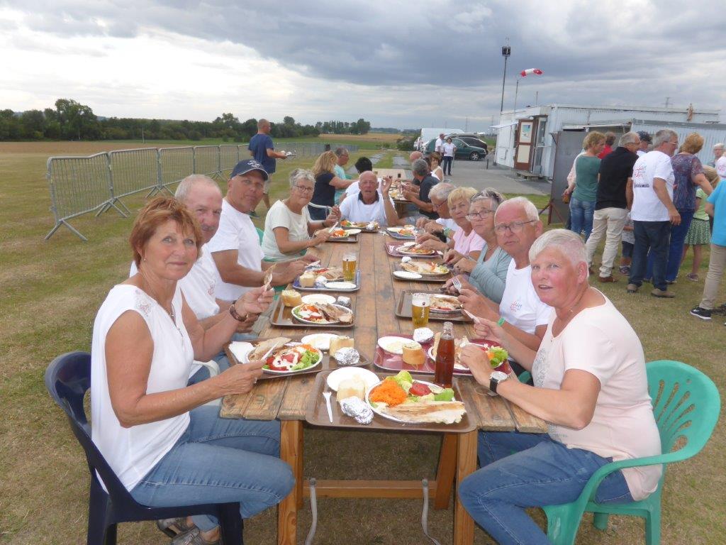 Wat onze vereniging onderscheidt van vele anderen is dat wij belang hechten aan niet-vliegen-gerelateerde aspecten tijdens langere treffens met familiaal karakter. Pottes is over de jaren uitgegroeid tot een schoolvoorbeeld van deze filosofie. Elke morgen vonden we iemand bereid om 20km verder de bestelling bij de bakker op te halen om lekker te kunnen ontbijten. Alle producten bleken zowat dubbel zo groot en halve prijs te zijn van wat we gewoon waren, en van uitstekende kwaliteit. Douchewagen en toilet waren zoals gewoonlijk voorhanden op de camping, alsook frigo’s gevuld met frisdranken en een assortiment koele biertjes in de grote tent. De afrekening klopte bijna zodat ook dit systeem zal aangehouden blijven.