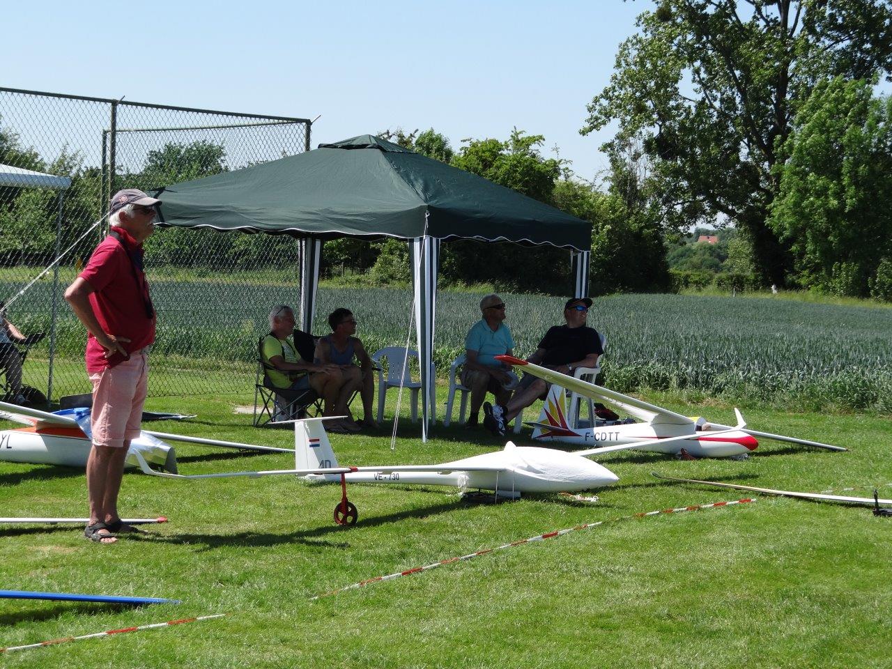 Het nieuwe bestuur moet (uitgezonderd Eddy) nog even wennen aan het geven van briefings, maar we vonden het in elk geval leuk dat er ook zonder megafoon elke dag om 10u heel wat piloten bij de box verschenen. De Flash-berichten doen hierin duidelijk hun werk. Het bestuur heeft nagelaten om bij de briefings te vragen aan de piloten om zich aan te melden om voor een uurtje vluchtbegeleider te zijn. Daarom hebben we dat dit treffen vaak zelf moeten doen. Het goede nieuws is dat we daardoor vanzelf heel snel leren uit onze fouten :-).