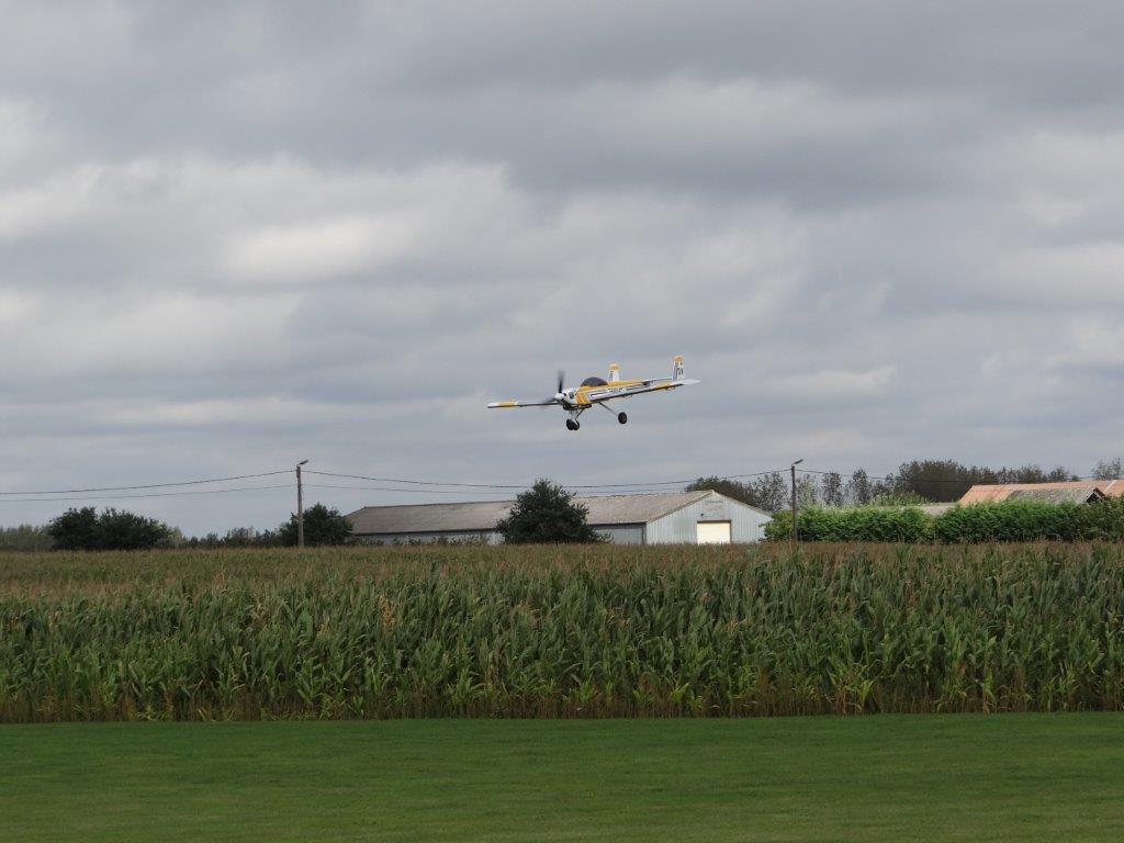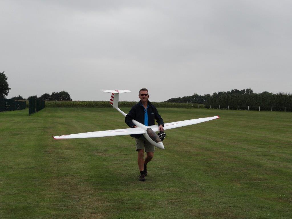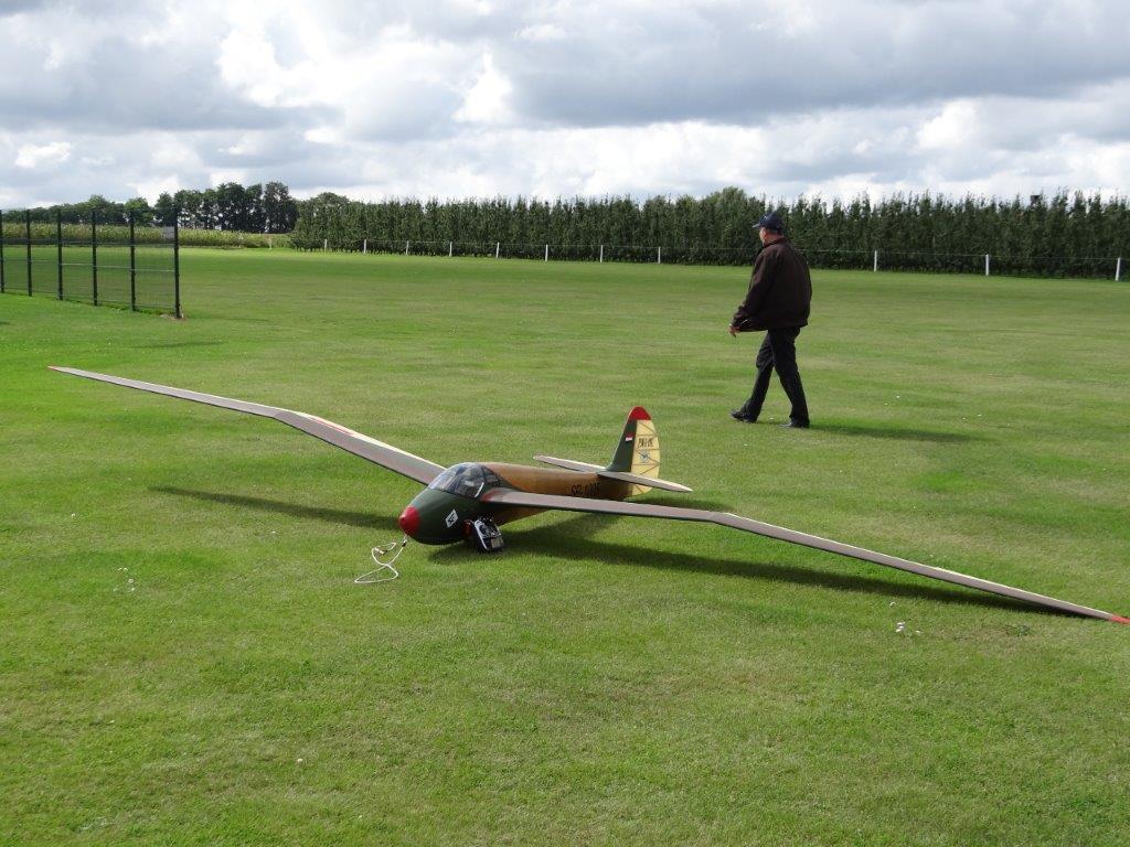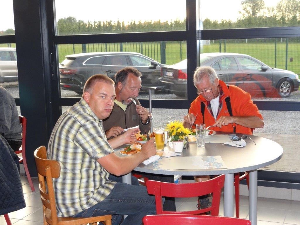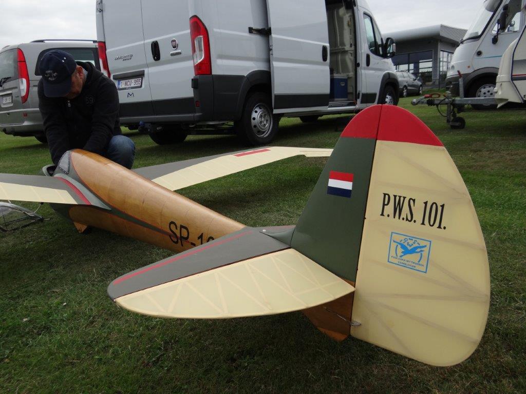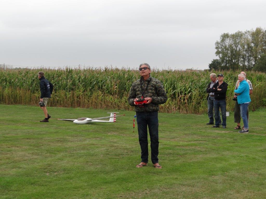 Zaterdag werd er tussen de buien door wat gevlogen. Plastic zeil werd meermaals heen- en weer over de toestellen getrokken. Opnieuw een stevige bries, maar gelukkig altijd in de lengte van de piste. De vloot werd die dag nog aangevuld door een joekel van een K6, en nog een Bidule111, gevlogen door Daniël. Traditioneel werd zaterdag afgesloten door een geweldige barbecue. Alles was tot in de puntjes voorbereid. Kandidaten die zich op voorhand hadden ingeschreven kregen een envelop met daarin de “bonnekes” voor 3 stukken vlees en een drankje. Waarom de bonnetjes kleiner dan een postzegel waren, weet ik nog altijd niet. Maar die 5 Michelin-sterren golden evengoed voor de overheerlijke BBQ. Top! Een dankwoordje van onze voorzitter, warm applaus voor alle medewerkers van de gastclub, en een slotwoord van de lokale voorzitter zette de avond in.