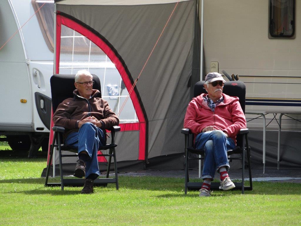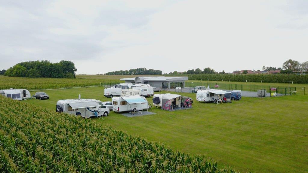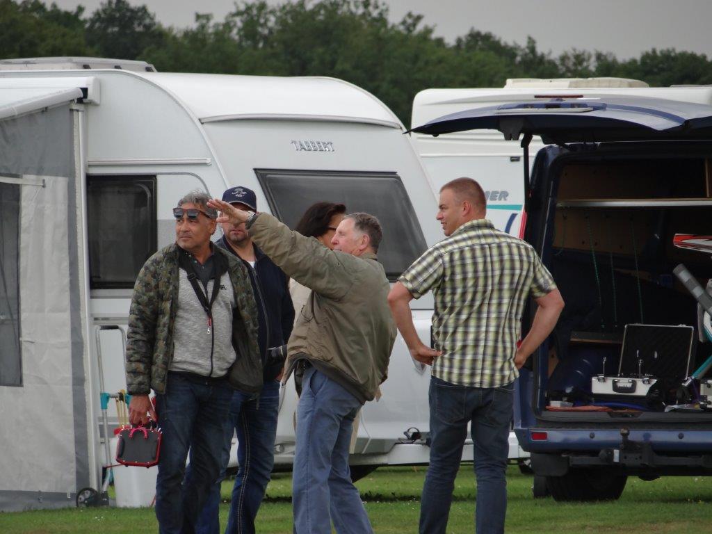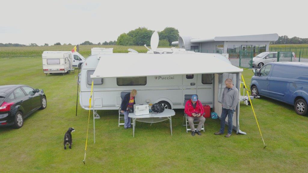 Op woensdag 6 september kwam een handvol kandidaten al aangereden. Via een kleine opening in het hekje thv de straat en het vliegterrein kon iedereen gelijk de kampeerplaats oprijden. Eens uitgestapt kon je onmiddellijk de strakke wind voelen. Deze laatste heeft ons de volgende dagen ook niet echt met rust gelaten. Maar daarover straks meer. Het opstellen van camper en caravans werd dan ook volgens de te verwachten windrichting uitgevoerd, zodat iedereen met de luifel of voortent een beetje beschutting had. Goed begonnen is half gewonnen!