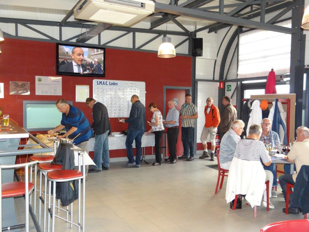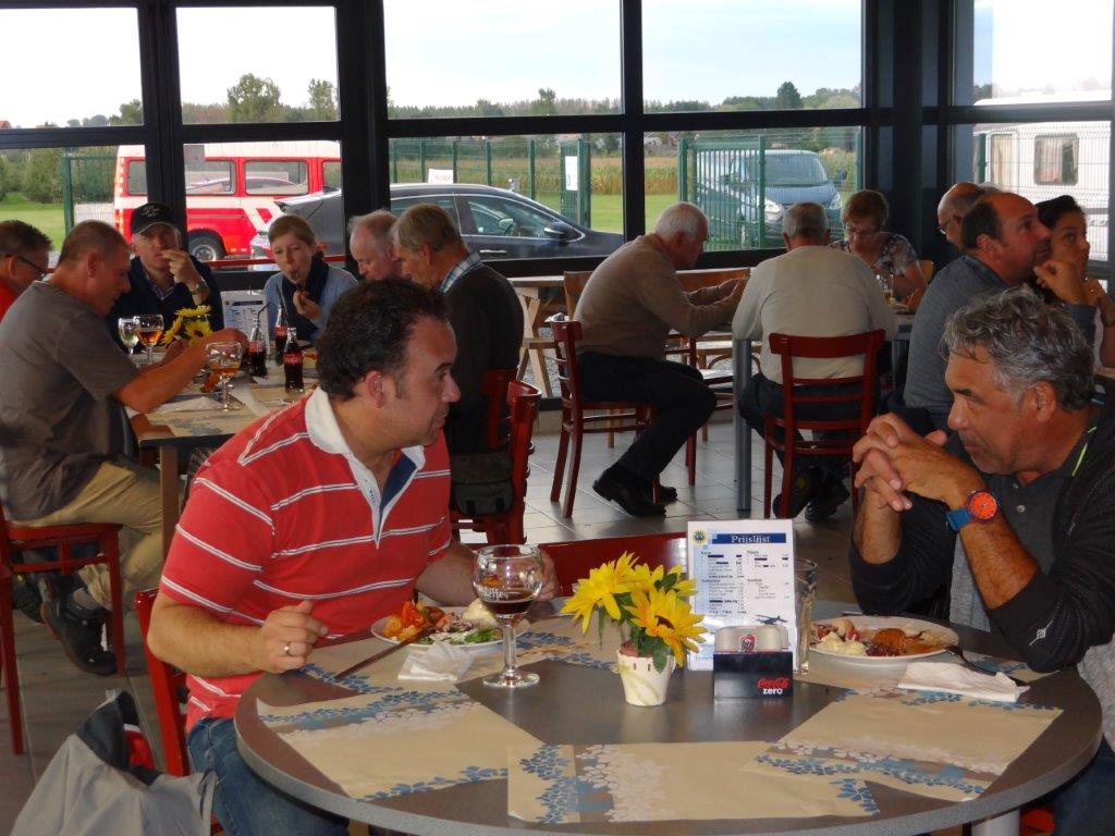 Qua vliegen was er die dag niet veel activiteit; een proefvlucht door Erik met een spectaculaire landing liet ons duidelijk zien dat het toch wat (te) turbulent was. Dan maar tijd voor een aperitiefje.