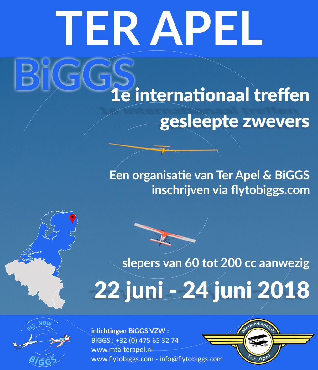 Op de achtergrond Duitse windmolens met de nabijheid van Drenthe voelbaar. Maar ons treffen vond toch echt plaats in de Nederlandse provincie Groningen en de Modelvliegclub Ter Apel (MTA) laat daar geen onduidelijkheid over bestaan. De Groningse vlag wappert vrolijk en ferm in de top van de vlaggenmast. Wat ons betreft mocht dat de eerste dagen iets minder enthousiast, maar de weergoden heb je nu eenmaal niet in de hand. Voor een 1e keer mocht BiGGS genieten van deze mooie vereniging, met een super plein van 2 ha zonder noemenswaardige obstakels binnen de vliegzone. Een hartelijk ontvangst door Sjaak en een fantastische zorg gedurende het gehele treffen maakte daar onderdeel van uit. Doe daar nog een mooie omgeving bij en je krijgt een BiGGS treffen om niet snel te vergeten. We hebben genoten van dit treffen en wat betreft alle deelnemers, inclusief aanwezige partners, voor herhaling vatbaar. Onder 'lees Meer' vind je een verslag door Ruud, bestuurslid van MTA, zoals de vereniging het zelf heeft ervaren.