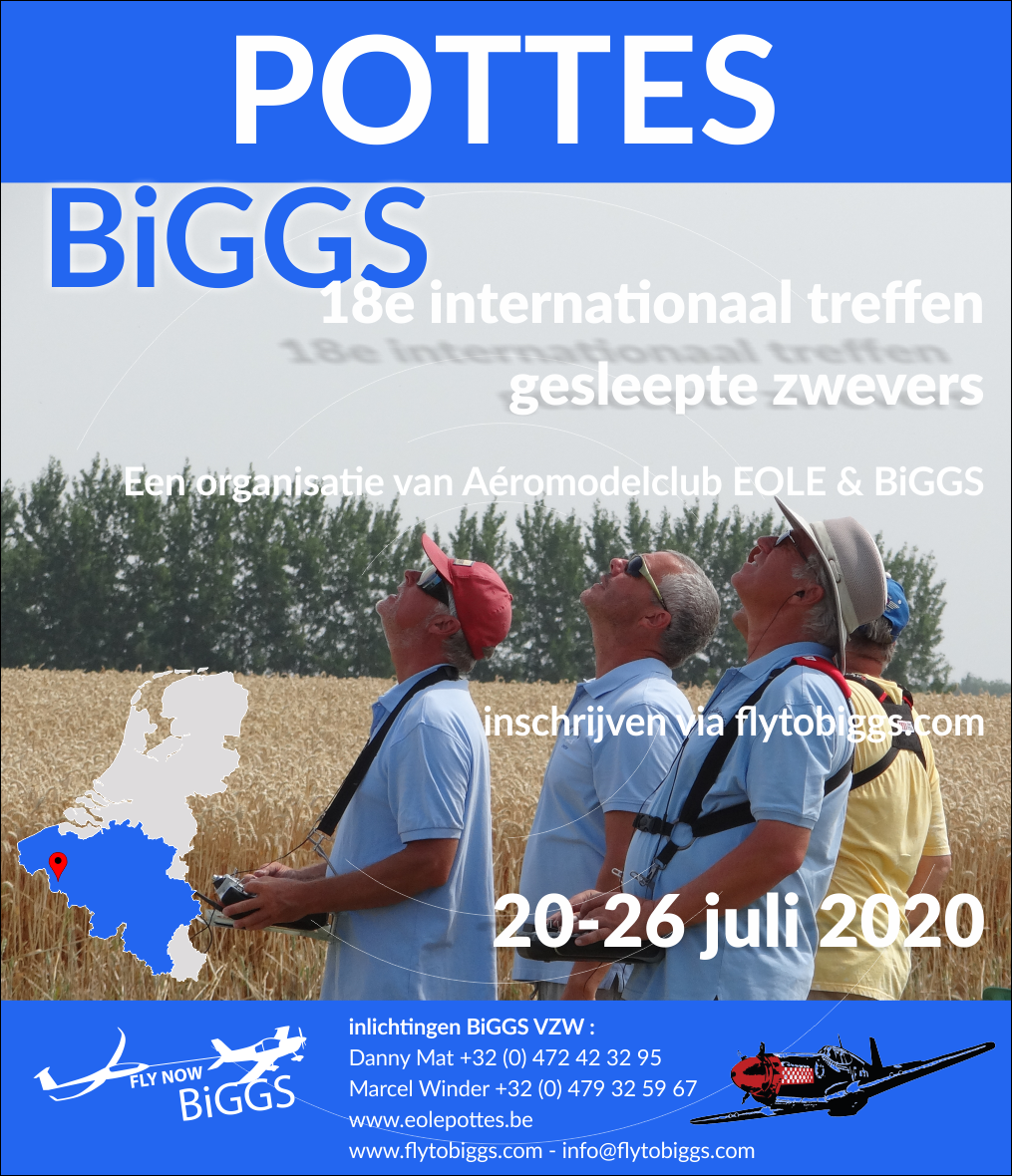 In Pottes zijn we dit jaar voor de 18e editie ! Laten we samen alle weergoden aanroepen om het minstens enkele graden frisser te houden dan de afgelopen twee jaar. Als dat zou lukken staat er weer een spetterende week vliegplezier voor ons klaar.
