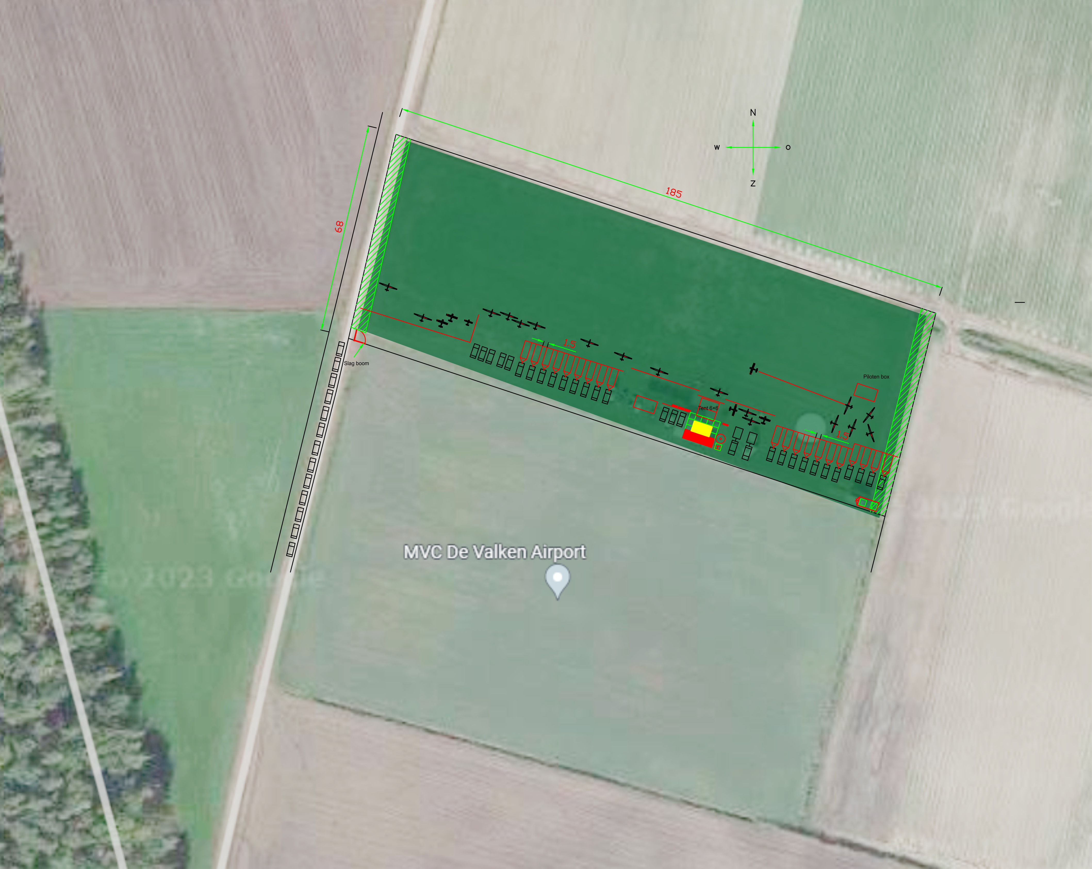 Er zal gestart en geland worden in de vooraf bepaalde richting en er is een veldleider aanwezig