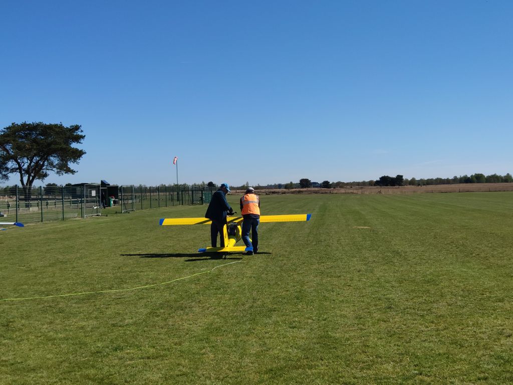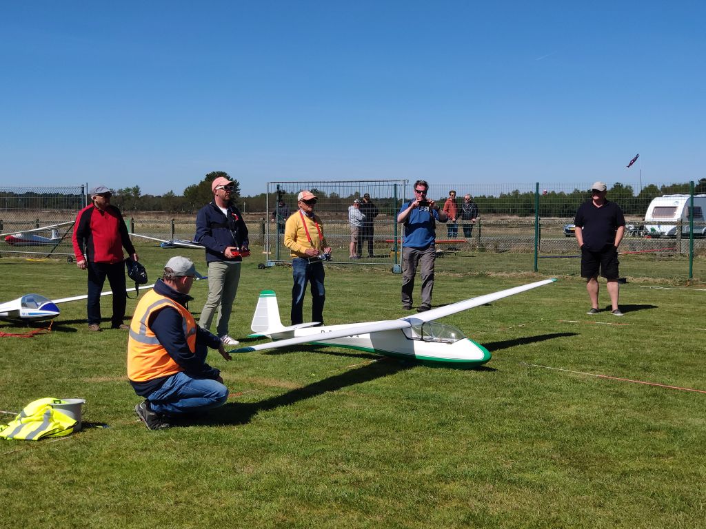 Twee jaar geen treffen, dat gaf bij velen een gevoel van onzekerheid. Kunnen we het nog, hebben we iets over het hoofd gezien. Maar daar was geen reden voor. Gedisciplineerd als BiGGS is, zaterdagmorgen om tien uur briefing, waarna het slepen soepel op gang kwam. Tot een uur of 6 in de middag werd er zeer frequent gevlogen en was er regelmatig een flinke file zichtbaar bij de startplaats. Het weer was uitstekend met veel zon. Er was thermiek aanwezig, maar niet heel enthousiast, mede door een ferm windje. Er was ook een elektro sleper beschikbaar voor zwevers tot ongeveer 10 kg. Uiteraard was er veel bij te praten na 2 jaar. De inwendige mens werd goed verzorgt door de gastclub gedurende de dag en s’ avonds was het gezellig druk in het clubhuis.
