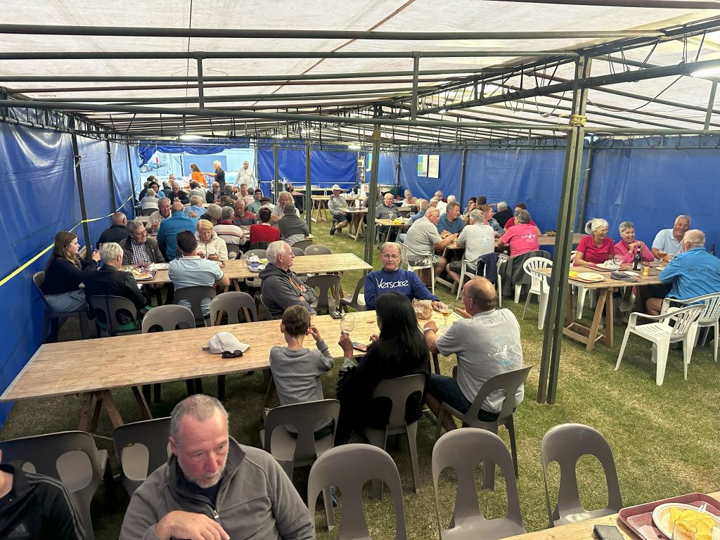 En een feest als BiGGS Pottes is niet compleet zonder de uitstekende zorgen van de lokale club en keuken. De enorme tent stond gastvrij te wachten, de drank was ruim voorradig en nagenoeg elke avond klonk het ‘SAAAAAAAAN-TEEEEEEEEE’ over de camping. Een groot compliment is op zijn plaats voor de organisatie van de Mosselavond, de verzorging van de gerookte hammen en de Barbecue door alle vrijwilligers, het was tot in de puntjes verzorgd! En een groot merci ook aan alle vrijwilligers die minder zichtbaar zijn maar ook onmisbaar om een weekend als dit tot een succes te maken, het verzorgen van de piste, het regelen van de douchekar, bouwen van de enórme tent, boodschappen doen, ijsjes verkopen, elektra regelen, we kunnen nog een bladzijde volschrijven.