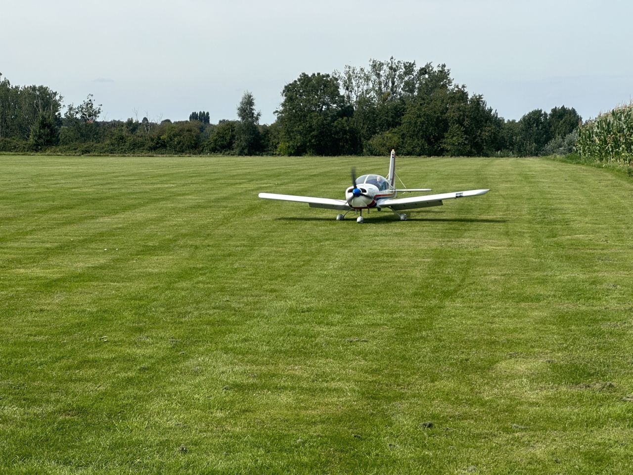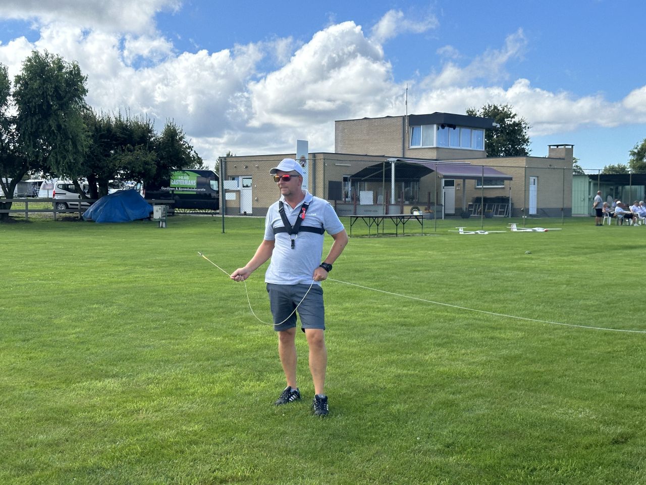 Onze Duitse vriend Wolfgang Thielen kwam ook als gast met ons mee vliegen, en hij gebruikte zijn prachtige gele kanarie niet enkel om mooie vluchten mee te maken maar ook om ons (of toch minstens ondergetekende) enkele prachtige nieuwe Duitse woordjes te leren. Na een stall boven het bosje aan de Noordkant van ons veld hadden we dringend behoefte aan een "Baumkletterer". De kletterer van dienst is bij TMV geen onbekende en ik kan iedereen die graag eens in een boom wil landen warm aanbevelen om dat zeker in Tongeren te proberen. De redding van je kist is dan in zeer bekwame handen.