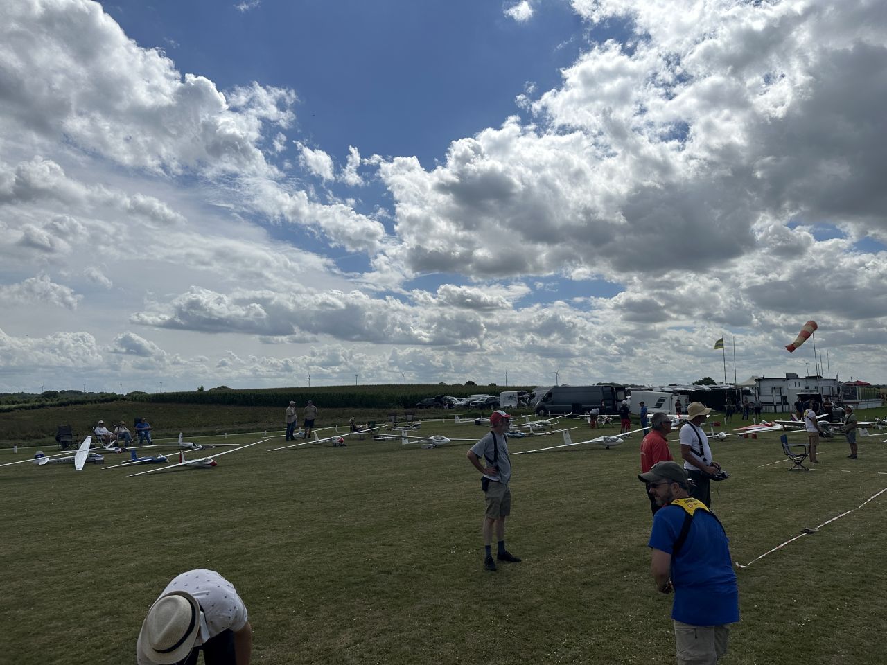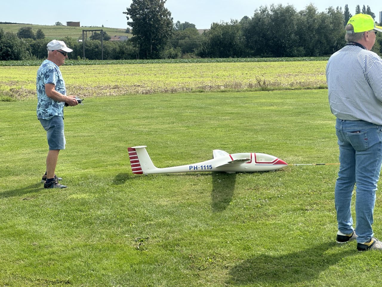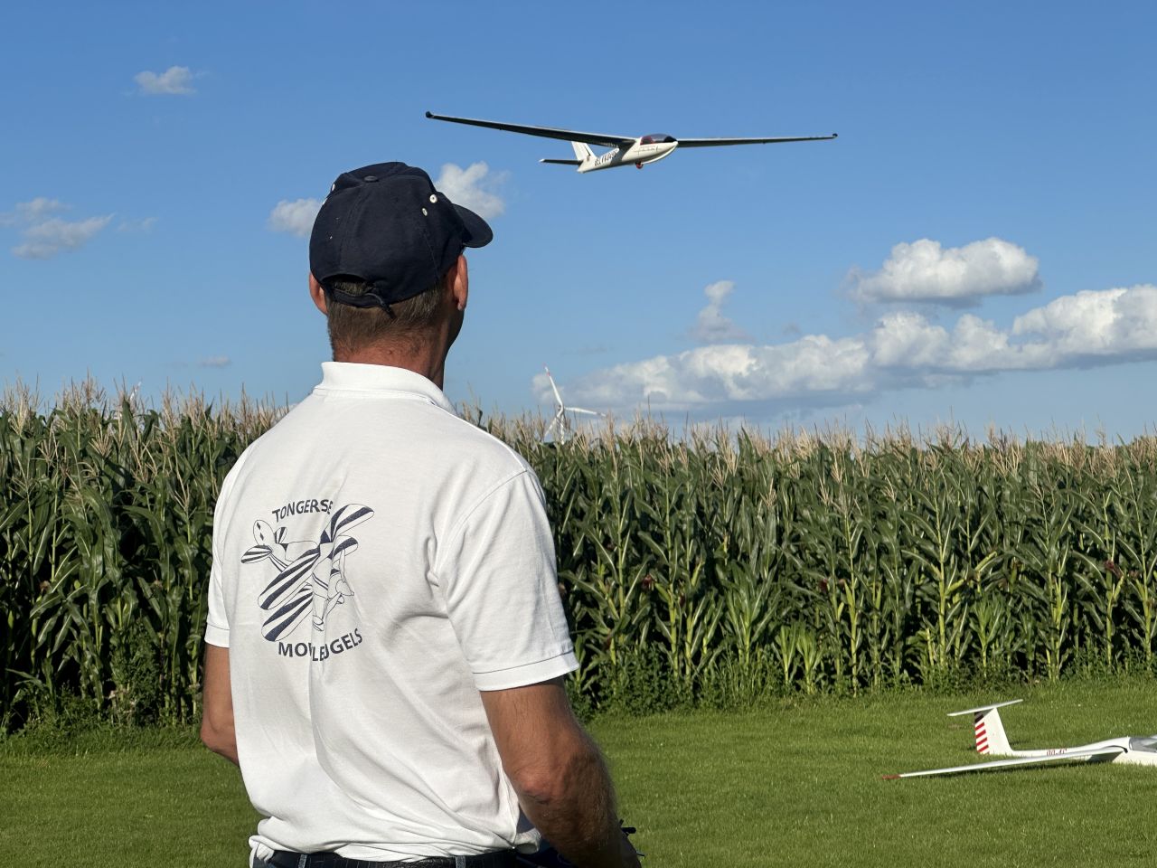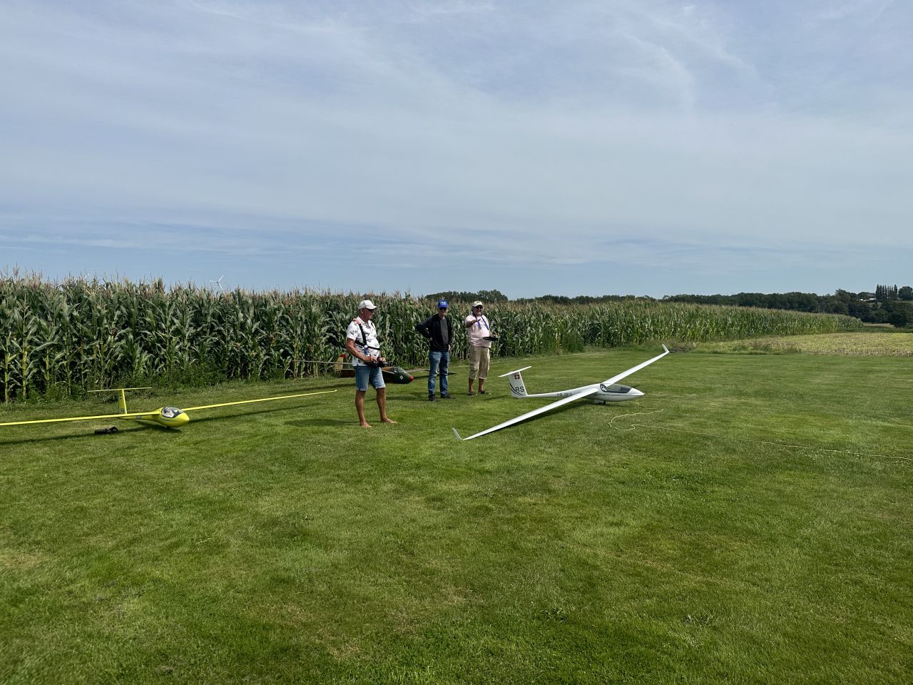 De weersvoorspellingen gingen wat op en af, maar buiten de zaterdag voormiddag hebben we van vrijdag tot maandag mooi vliegweer gekregen. Bij momenten was het mooi thermisch en werden er lange vluchten gemaakt door verschillende piloten. Hans Clement, een nieuwe BiGGS telg lijkt (nog) niet zo verknocht aan thermiek zweven maar hij maakte met zijn verschillende kisten bij elke vlucht de nodige capriolen wat dan weer een andere manier is om je dada te vinden in het gesleepte zweven. De Fauvelle van Davy Carmans deed het bij zijn maiden erg goed, en werd bij de eerste vlucht vakkundig gesleept door Patrick Devos. Beide laatsten zijn leden van TMV maar ook bij de BiGGS leden geen onbekenden.