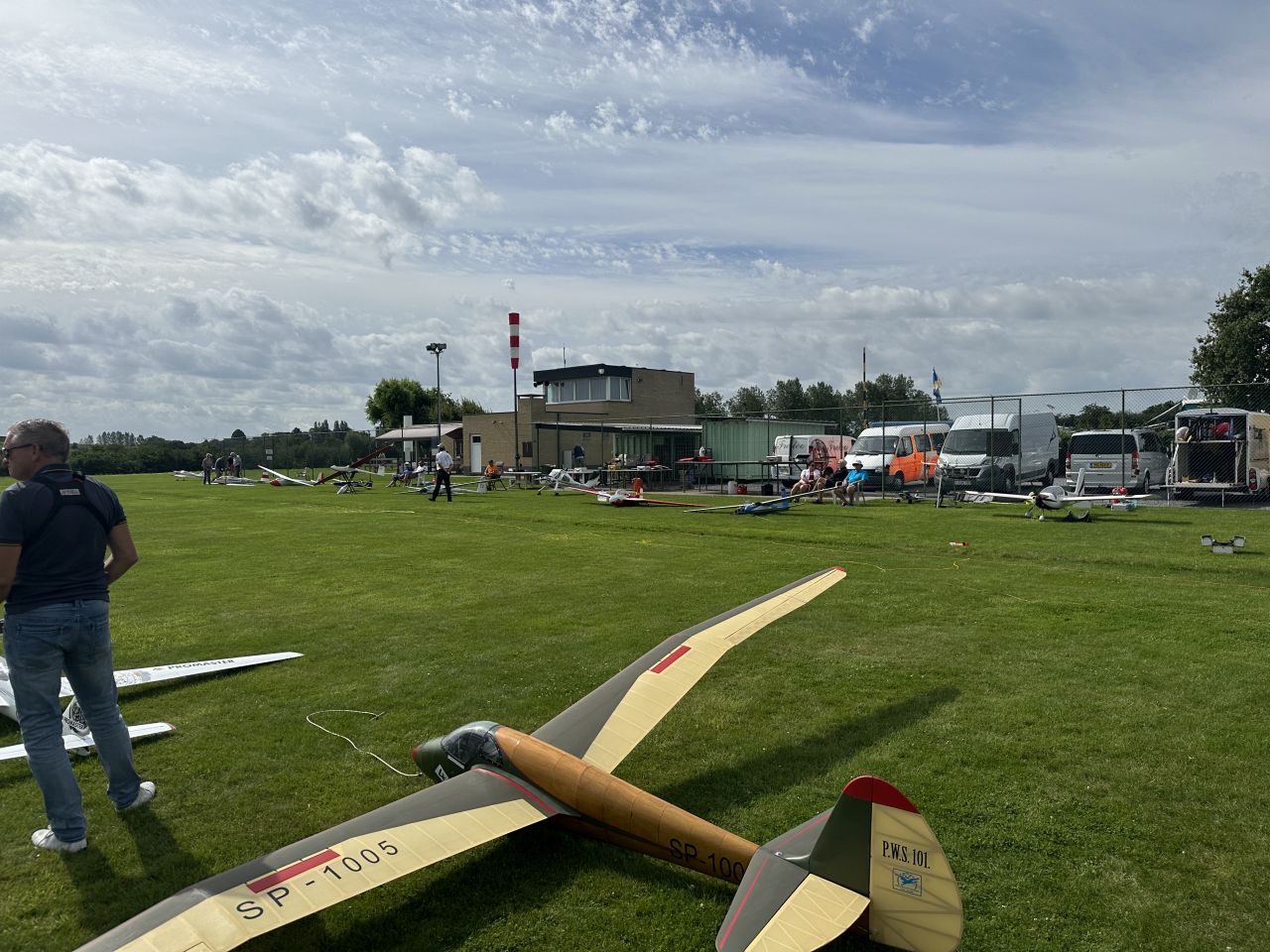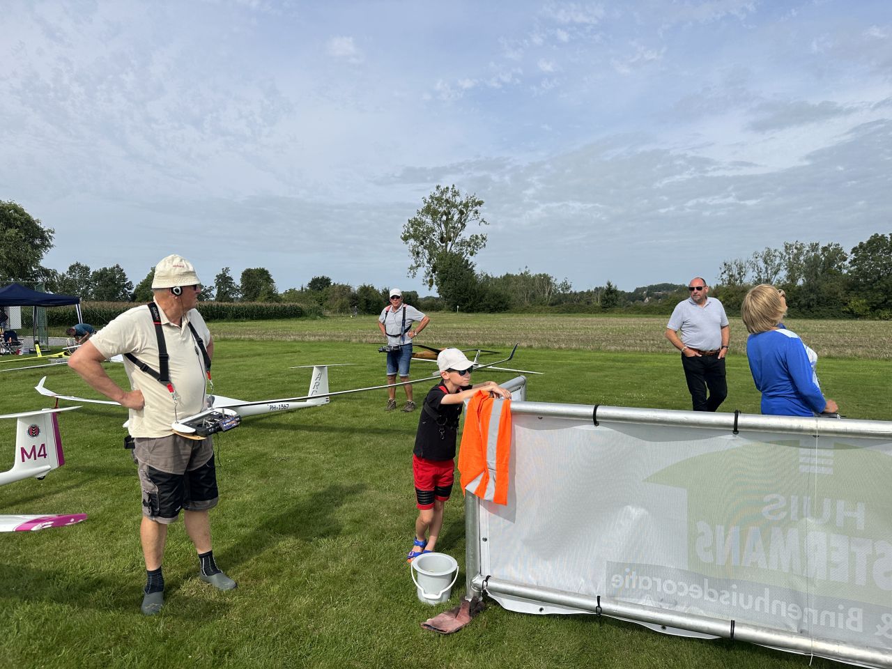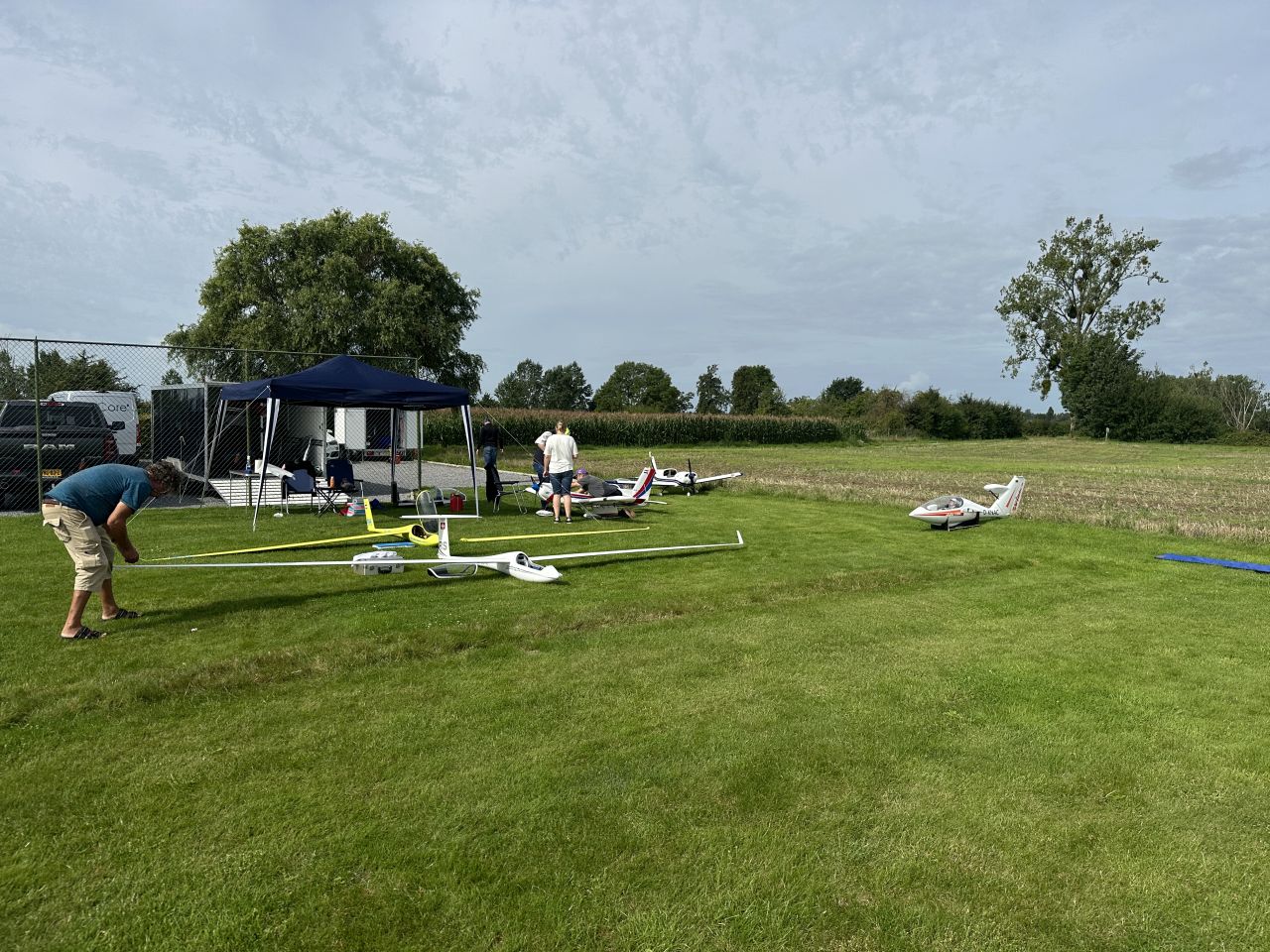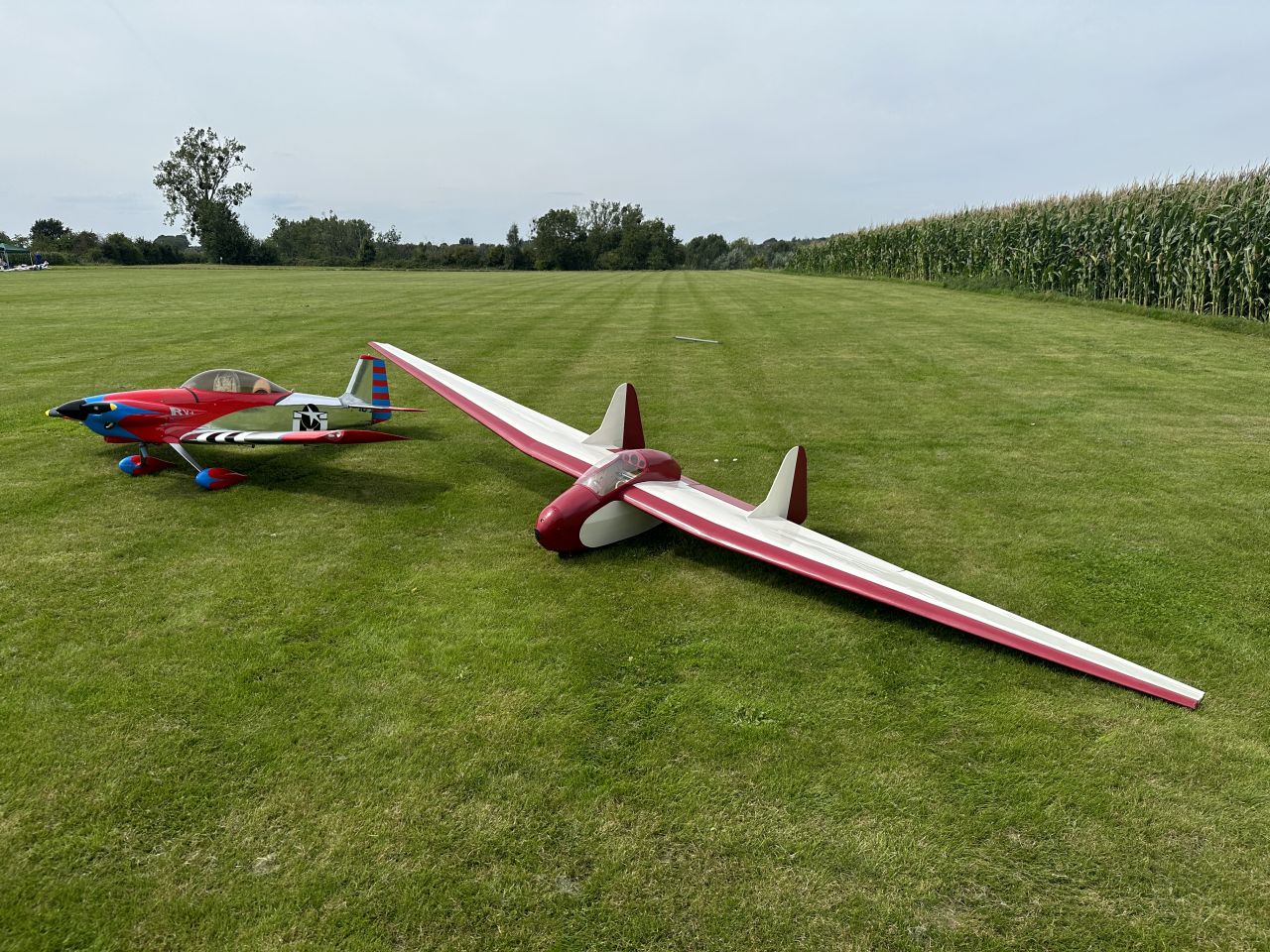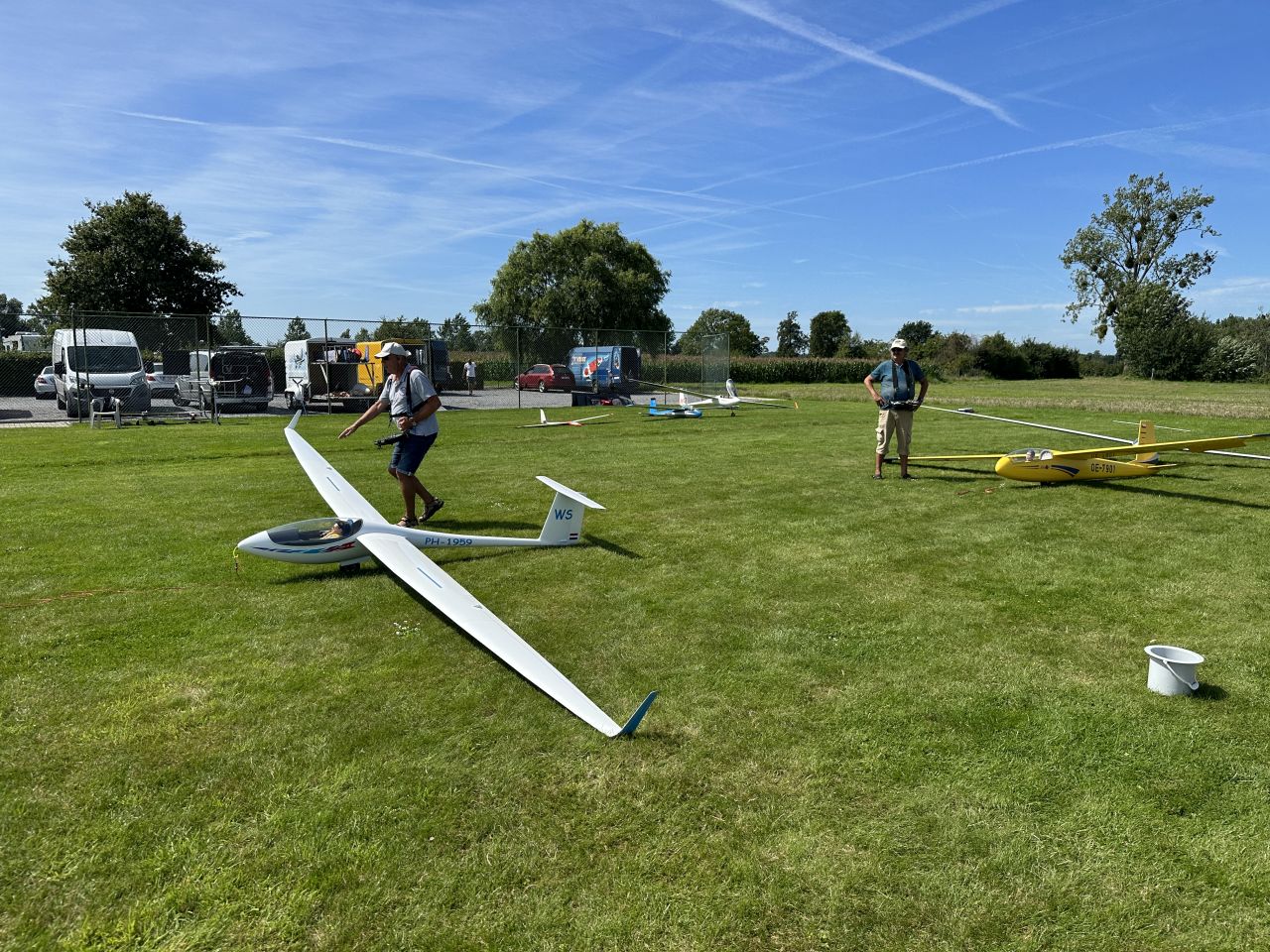 De weersvoorspellingen gingen wat op en af, maar buiten de zaterdag voormiddag hebben we van vrijdag tot maandag mooi vliegweer gekregen. Bij momenten was het mooi thermisch en werden er lange vluchten gemaakt door verschillende piloten. Hans Clement, een nieuwe BiGGS telg lijkt (nog) niet zo verknocht aan thermiek zweven maar hij maakte met zijn verschillende kisten bij elke vlucht de nodige capriolen wat dan weer een andere manier is om je dada te vinden in het gesleepte zweven. De Fauvelle van Davy Carmans deed het bij zijn maiden erg goed, en werd bij de eerste vlucht vakkundig gesleept door Patrick Devos. Beide laatsten zijn leden van TMV maar ook bij de BiGGS leden geen onbekenden.