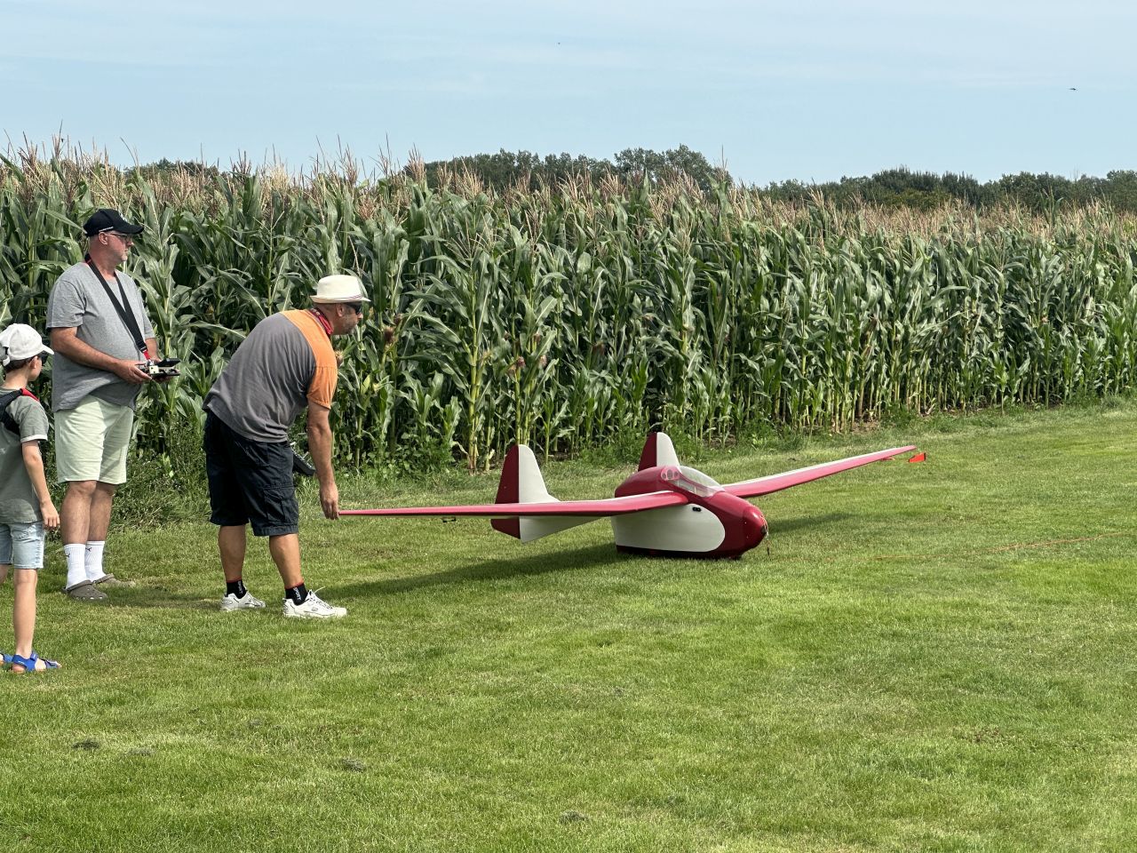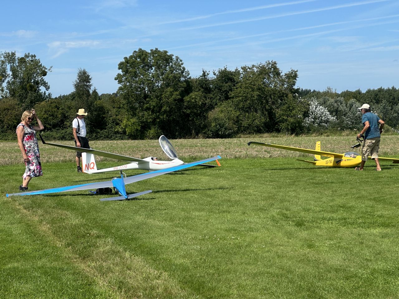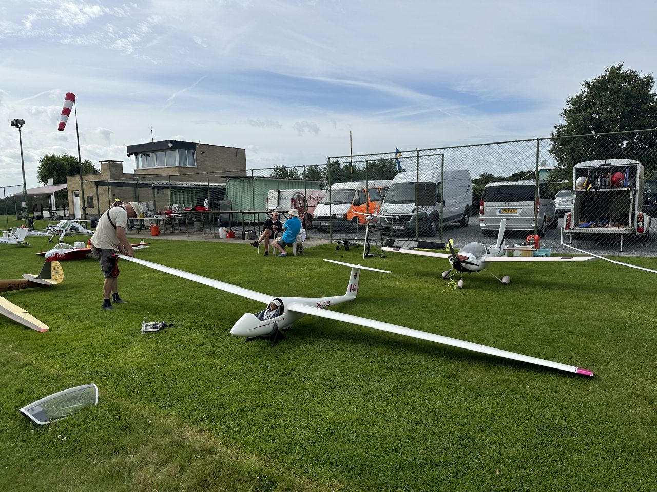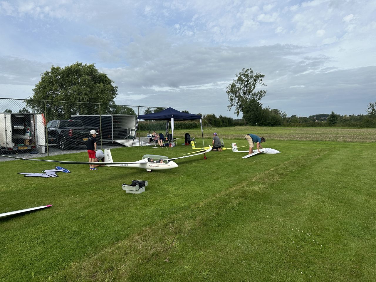 De weersvoorspellingen gingen wat op en af, maar buiten de zaterdag voormiddag hebben we van vrijdag tot maandag mooi vliegweer gekregen. Bij momenten was het mooi thermisch en werden er lange vluchten gemaakt door verschillende piloten. Hans Clement, een nieuwe BiGGS telg lijkt (nog) niet zo verknocht aan thermiek zweven maar hij maakte met zijn verschillende kisten bij elke vlucht de nodige capriolen wat dan weer een andere manier is om je dada te vinden in het gesleepte zweven. De Fauvelle van Davy Carmans deed het bij zijn maiden erg goed, en werd bij de eerste vlucht vakkundig gesleept door Patrick Devos. Beide laatsten zijn leden van TMV maar ook bij de BiGGS leden geen onbekenden.