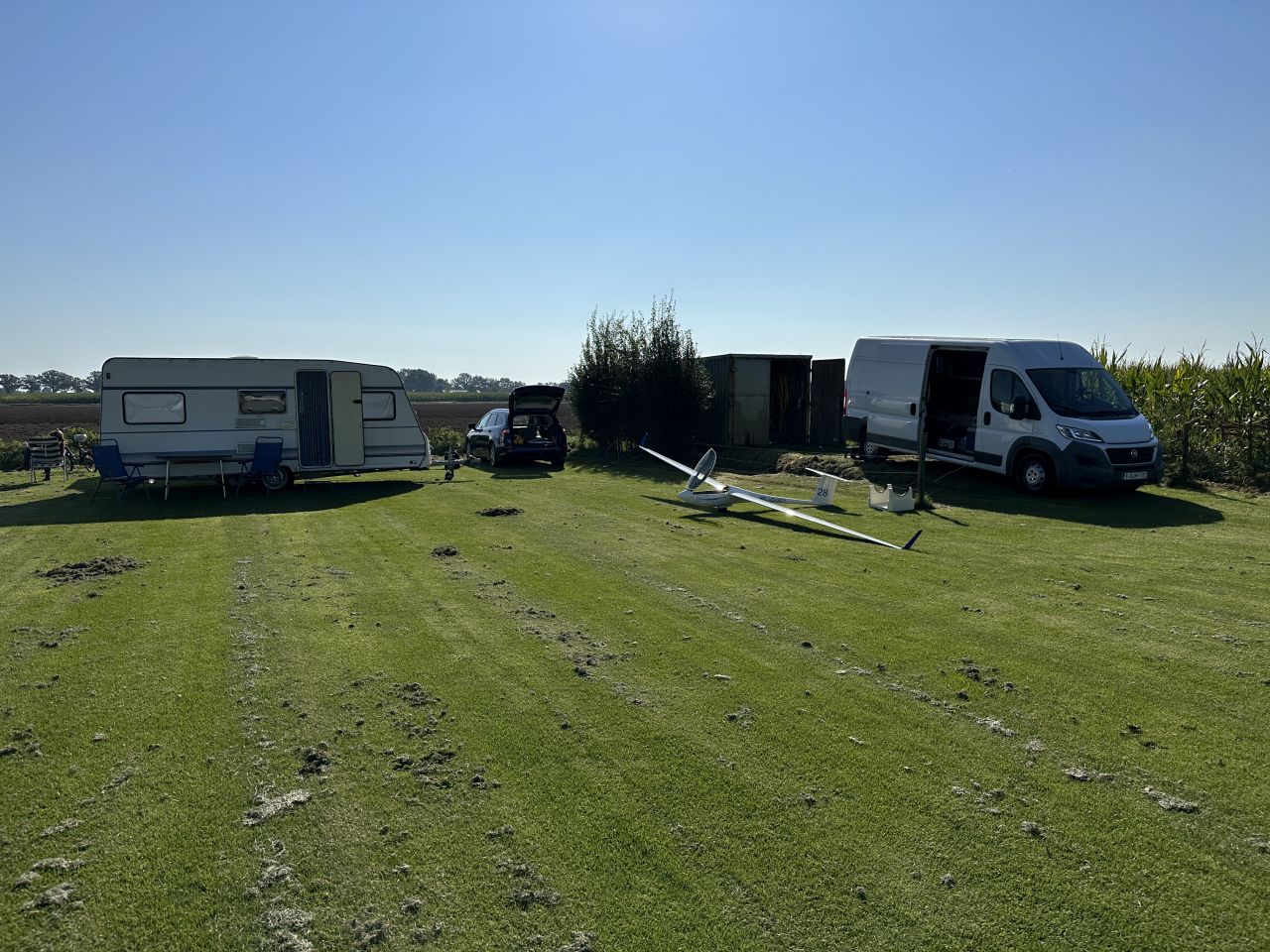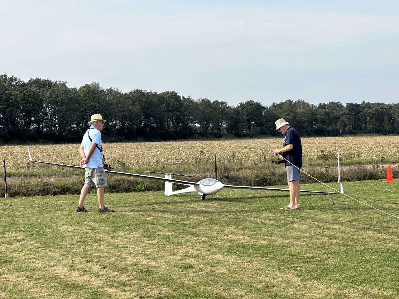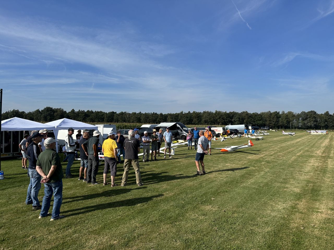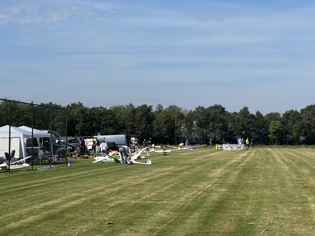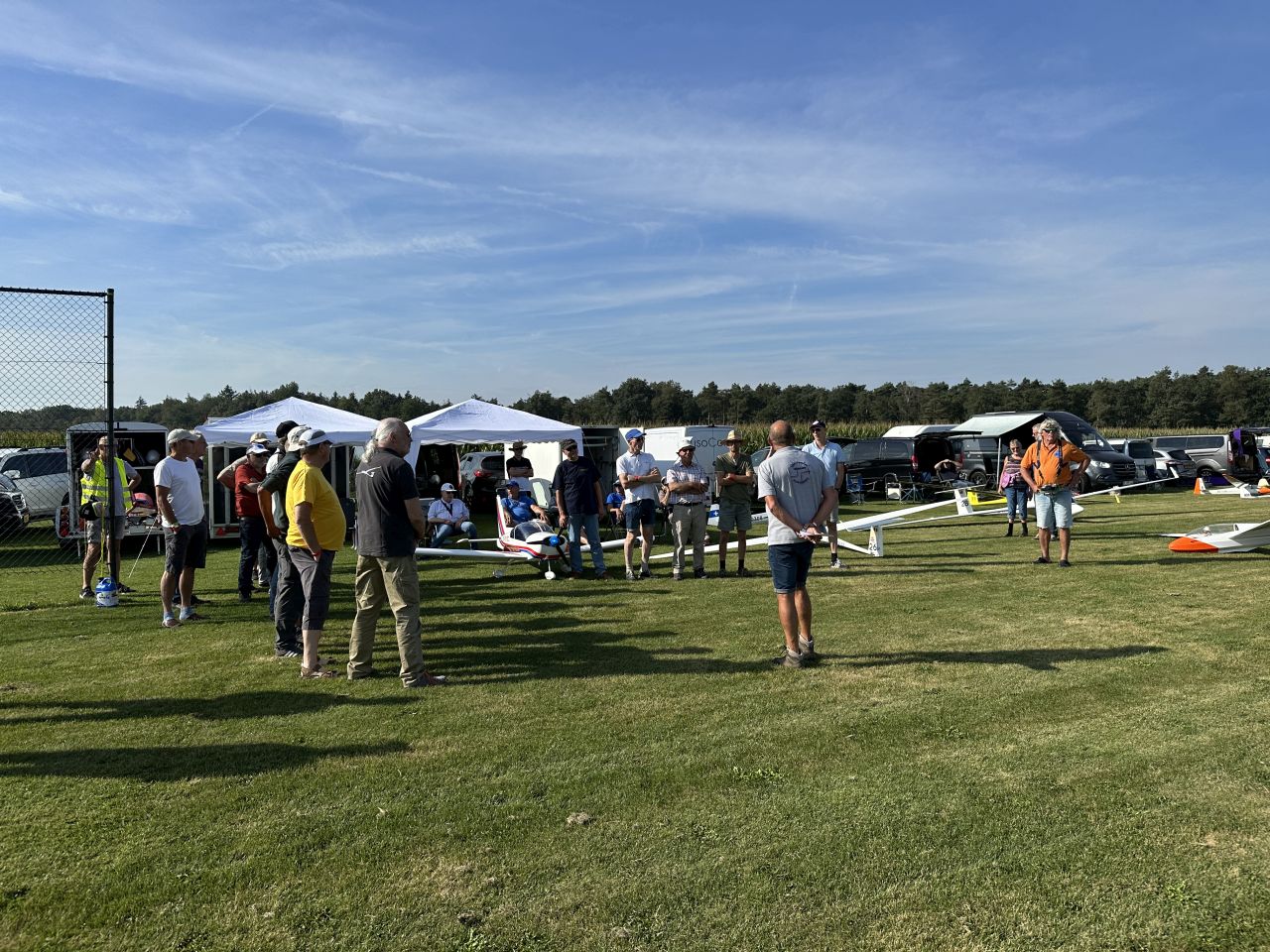 Wim heeft samen met een aantal trouwe leden van "MVC De Valken" uit Someren een mooi weekend voor ons voorbereid. Het gras, het water, het aggregaat, de gevulde koelkasten, ... aan alles was op voorhand gedacht en we werden op vrijdag ochtend hartelijk ontvangen. Wat voor de BiGGS leden meteen opviel was dat er ook een groep "onbekenden" aanwezig waren. Dat waren vooral mensen van IGG Duitsland, maar ook enkele IGG NL piloten en een delegatie van MASH waren present. Het was leuk om ook deze mensen te leren kennen en om samen met hen te vliegen én om samen vliegervaringen te delen. Op zaterdag was het heel wat drukker en was het voor de slepers doortrekken om iedereen tijdig in de lucht te krijgen. Het mooie nazomerweer maakte dat er prachtig kon worden gevlogen en Heinz zette met zijn JS1 uiteraard weer de puntjes op de i met een vluchtje van "zweieinhalb Stunden". Die man ruikt volgens mij gewoon thermiek.