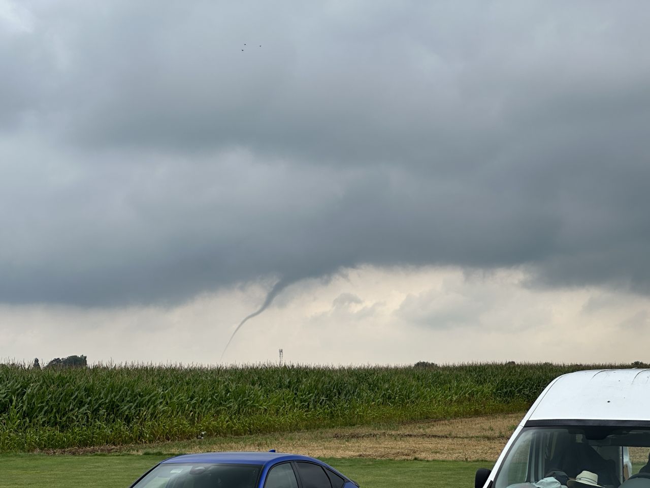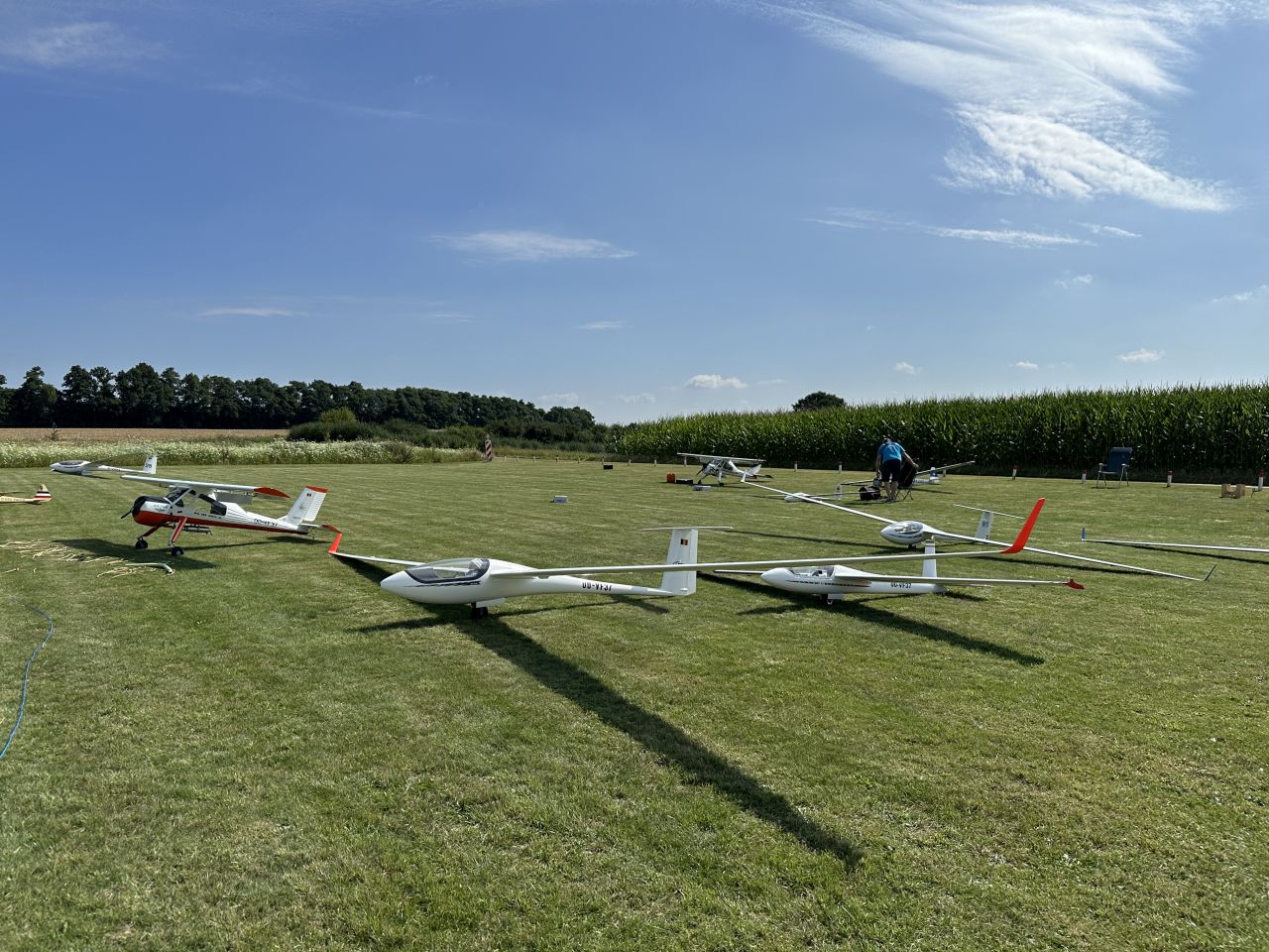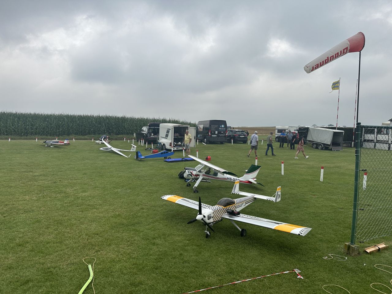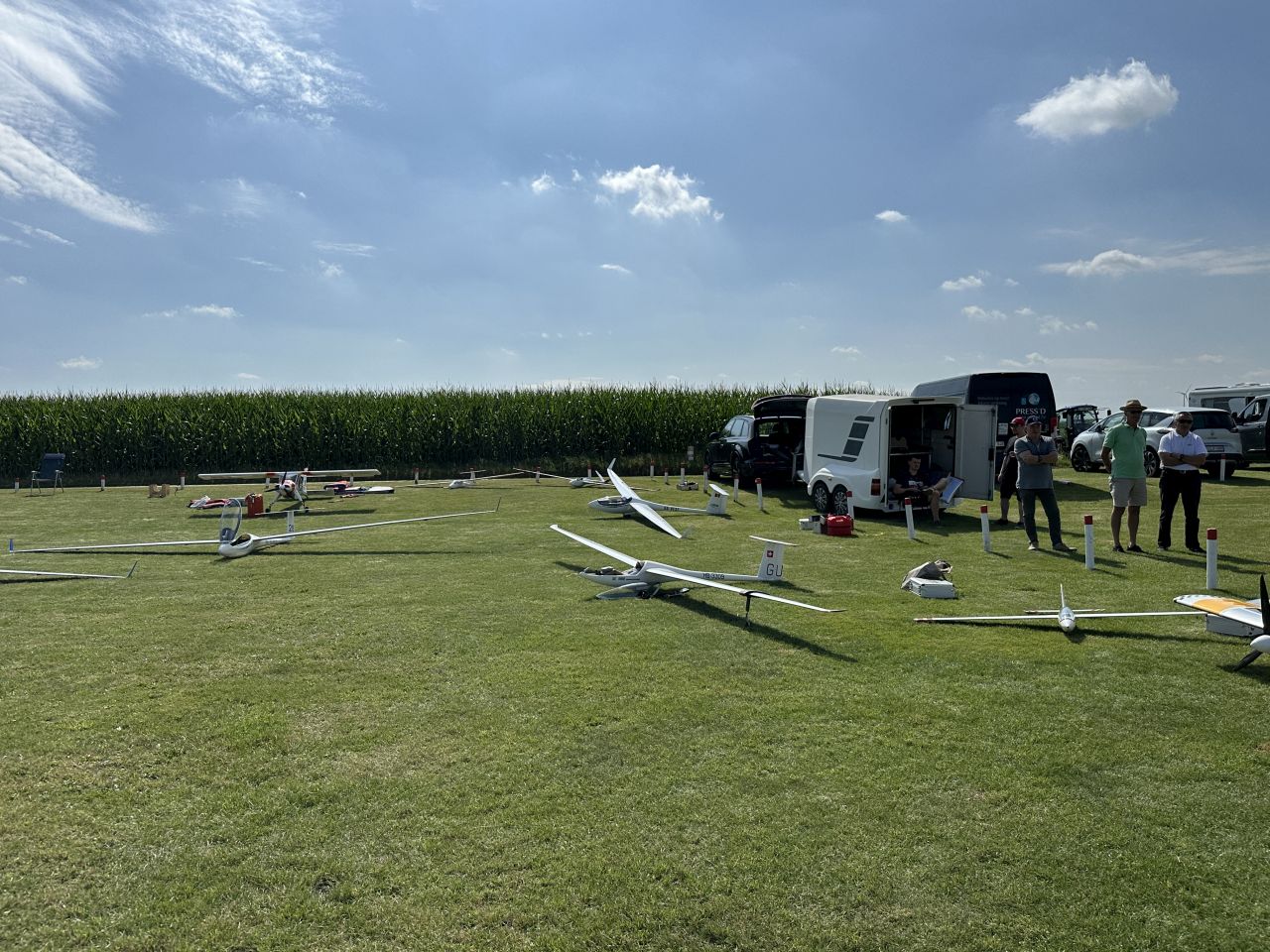 Op zondag zat de wolkenbasis in de voormiddag op 200 meter, maar zelfs dat weerhield er ons niet van om toch wat vluchten te maken inclusief enkele laagsleeps. Rond de middag zagen we in het Oosten zelfs een windhoos, wat ons nederig deed stilstaan bij de natuurelementen en hoeveel geluk we ook dit treffen weer hebben gehad om vier dagen te kunnen vliegen.