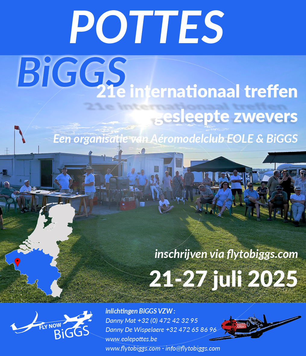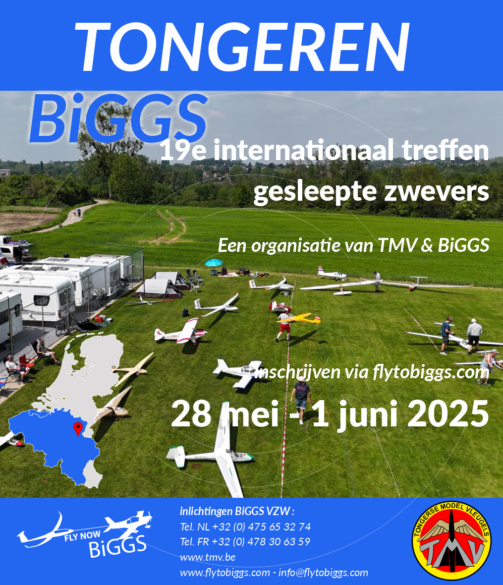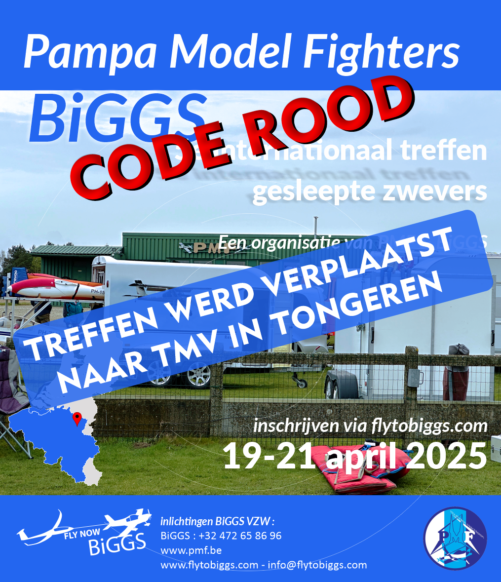 BiGGS dankt de besturen van Pampa ModelFighters en van de Tongerse Modelvleugels dat ze zo snel en flexibel hebben ingespeeld op de weersomstandigheden. Door de code rood werd ons feest verhuisd naar Tongeren en werden we daar drie dagen heel hartelijk ontvangen.