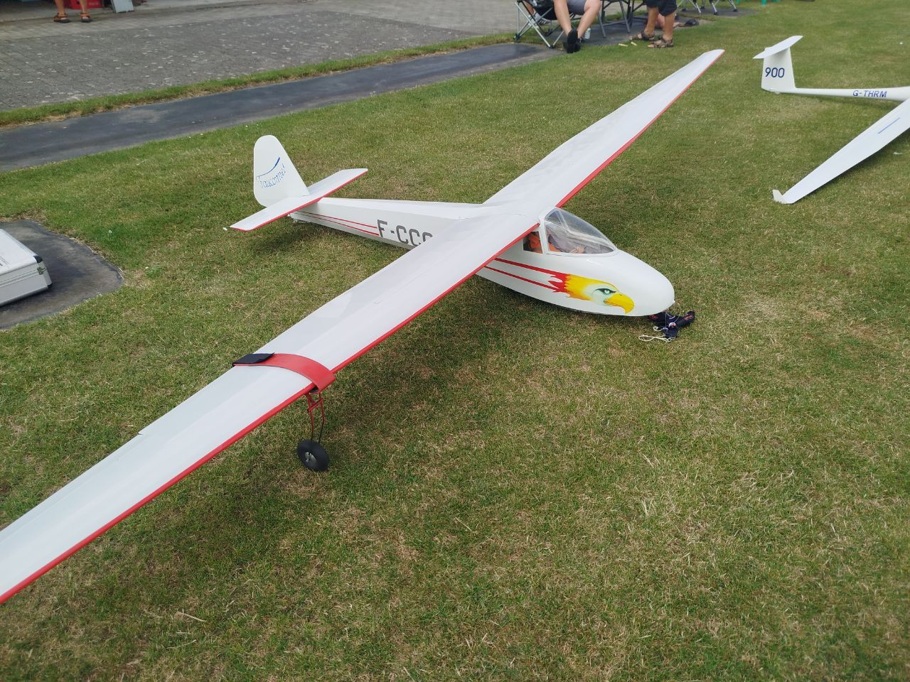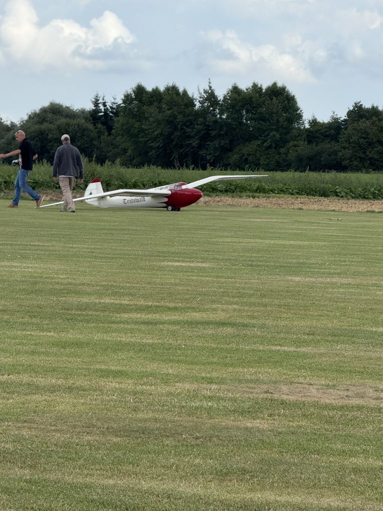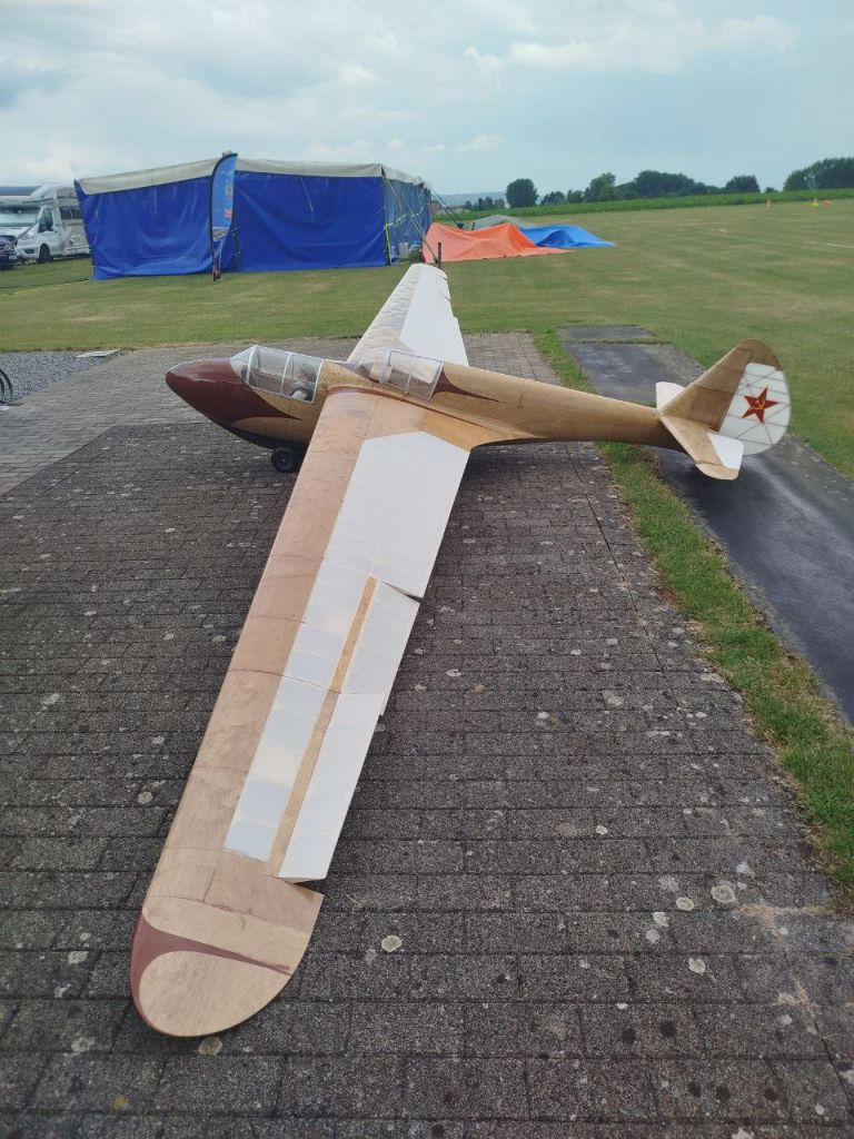 gelijk had hij en werden toestellen terug het veld opgetrokken. Ruud zijn vliegende vleugel Vampier probeerde het nogmaals en de eerste vluchten met succes, helaas werd de derde vlucht ook zijn laatste voor dit jaar. Alexander Carton had zijn laatste nieuwe pronkstukken bij, Minimoa Mo 2 1/2 en Rostov GT1 1/2 die keurig door John G en Wim S de lucht in getrokken werden. Proficiat voor de bouwers, sleepers en toeschouwers die na landing uithaalden met een groot applaus.