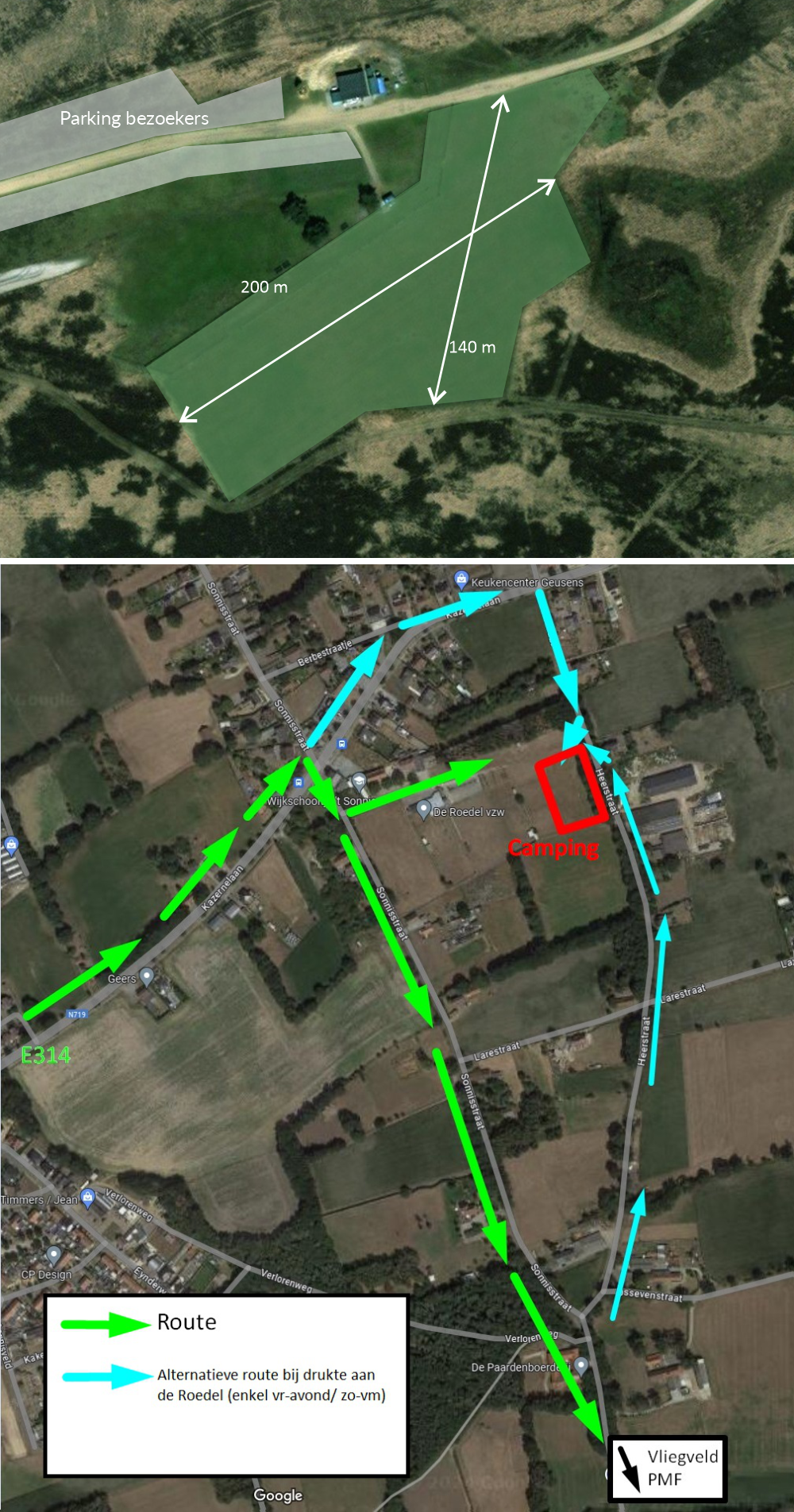 Kamperen kan je in de omgeving, maar niet op het terrein van PMF en we kregen ook geen reactie van hondenschool de roedel.